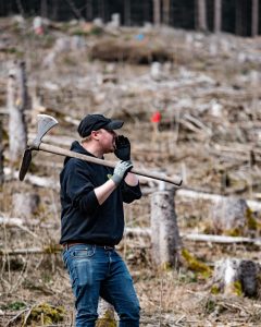 Im RSB-Wald setzen wir auf klimaangepasste Baumarten wie Bergulme, Bergahorn, Wildapfel, Vogelkirsche und Douglasie, die besonders widerstandsfähig gegenüber Hitze und Trockenperioden sind.